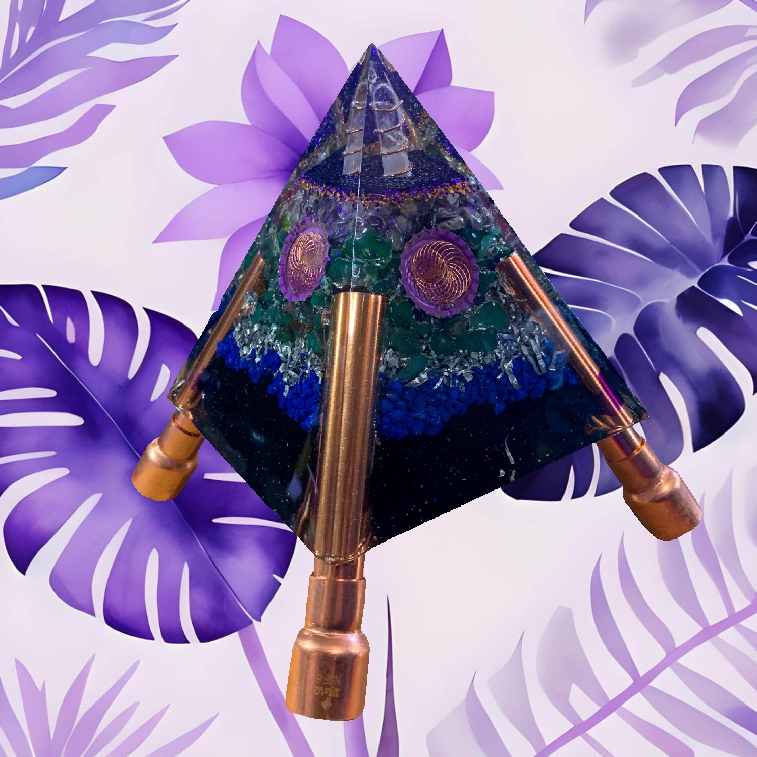 Add copper pipes of 5 to 10 feet and place outside to enhance garden growth, disperse EMF emissions in the surrounding area. This orgone pyramid consists of a crystal wrapped in pure copper at crown and vortex spiral windows on all sides for robust energy flow.